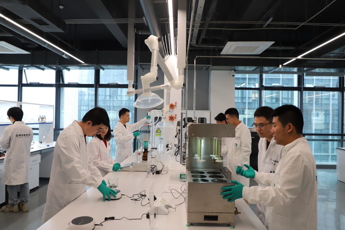 白馬湖實(shí)驗(yàn)室的科研人員正在進(jìn)行二氧化碳捕集及利用實(shí)驗(yàn)。 劉婉瑩 攝