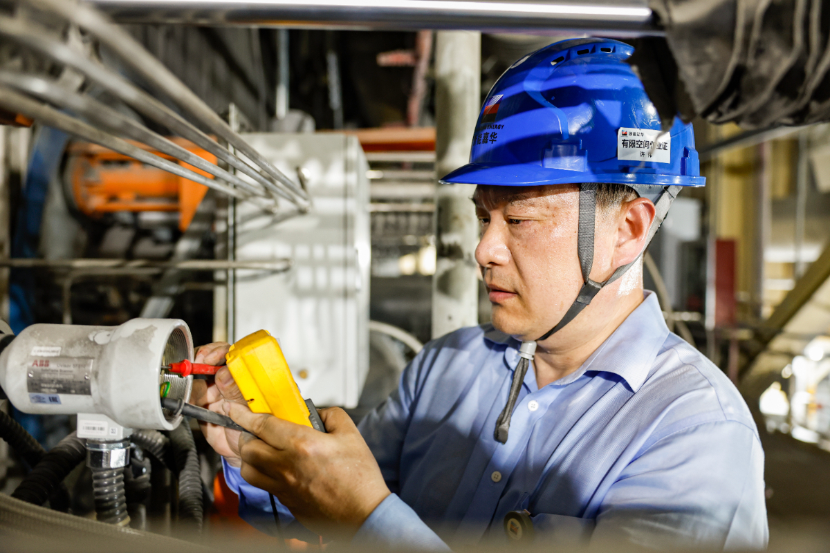 烈陽高照,浙能集團(tuán)旗下的伊犁新天煤化工儀控人員正在檢測(cè)儀表工作狀態(tài)。 方佳 攝