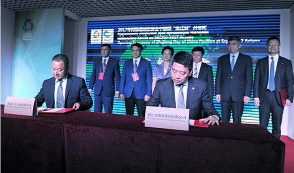 當地時間6月23日上午11時,2017年阿斯塔納世博會中國館“浙江日”開幕式在中國館多功能廳拉開帷幕。浙江省副省長梁黎明、中國貿促會副會長陳洲、中國駐哈薩克斯坦大使張漢暉、哈薩克斯坦能源部副部長馬克沃夫﹒馬拉杜勒等出席開幕式并致辭。浙能集團總經理柯吉欣受邀出席開幕式,并在相關領導和嘉賓見證下,與新疆廣匯石油公司董事長況軍就哈薩克斯坦有關能源項目簽署戰略合作諒解備忘錄。