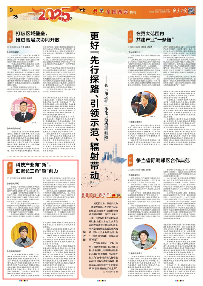 江蘇省委機關(guān)報《新華日報》全國兩會特刊長三角一體化相關(guān)主題稿聚焦全國人大代表、浙能集團王潔同志。 新華日報 圖