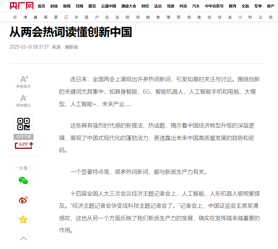 央廣網(wǎng)轉(zhuǎn)載《從兩會熱詞讀懂創(chuàng)新中國》,聚焦王潔同志。 央廣網(wǎng) 圖