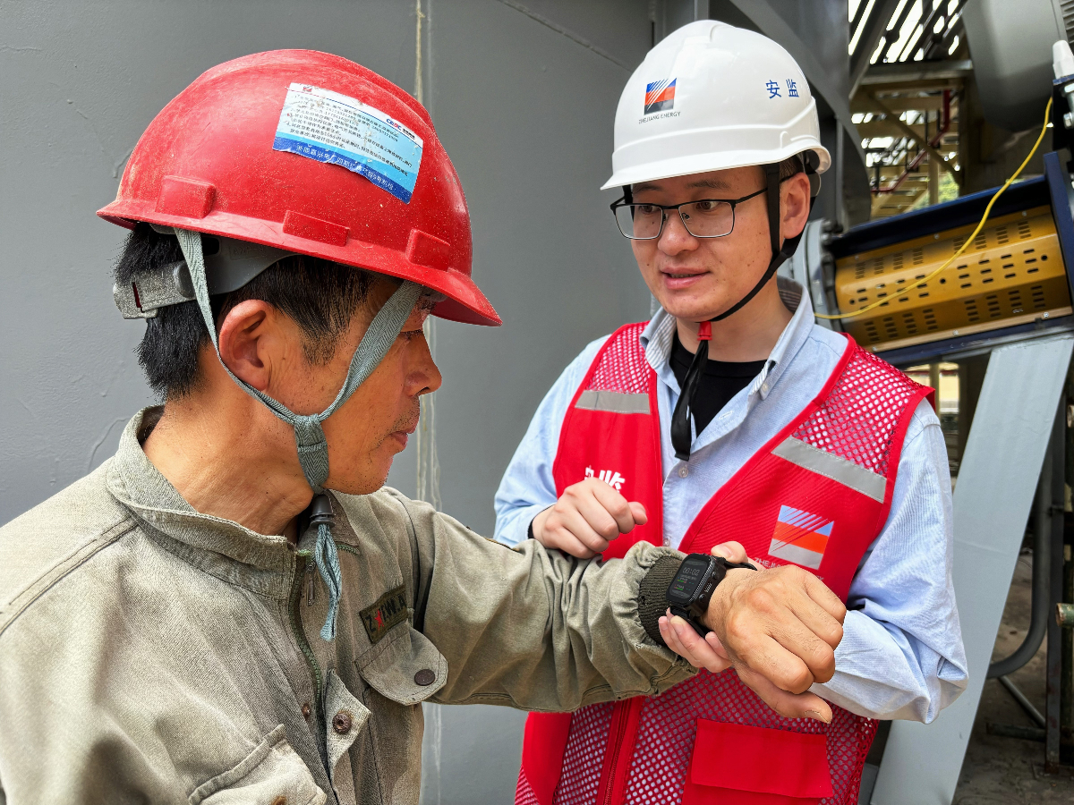 腕間智聯(lián)守護(hù)“生命盲區(qū)”。有限空間作業(yè)的風(fēng)險常被稱為“看不見的殺手”。為此,浙江電建嘉興項目部質(zhì)安處處長陳玉龍對吸收塔內(nèi)的防腐作業(yè)格外重視。