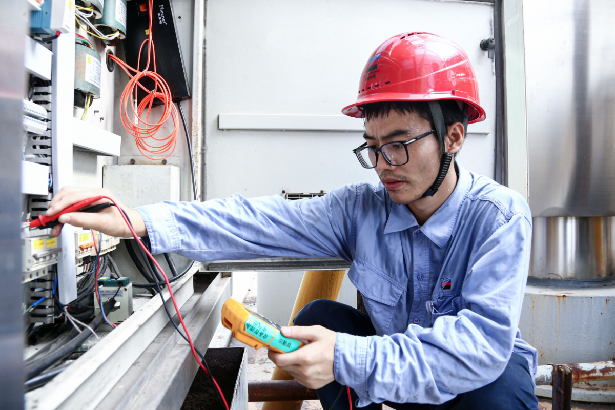 浙能一線電廠職工正進(jìn)行日常檢查,護(hù)航發(fā)電設(shè)備安全,汗珠順著他的臉頰流下。 鄭慧瑗 攝