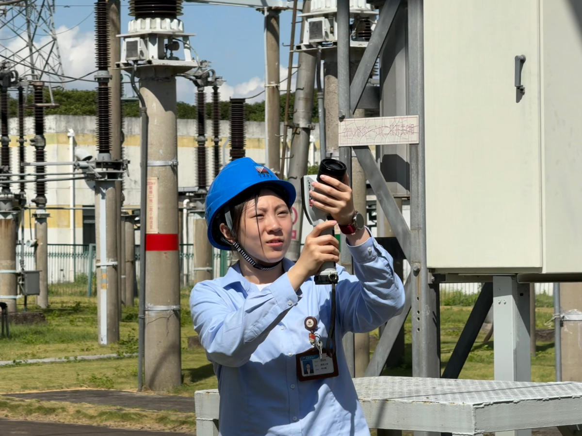 臺州電廠維護部職工在升壓站測溫。 張艷瓊 攝