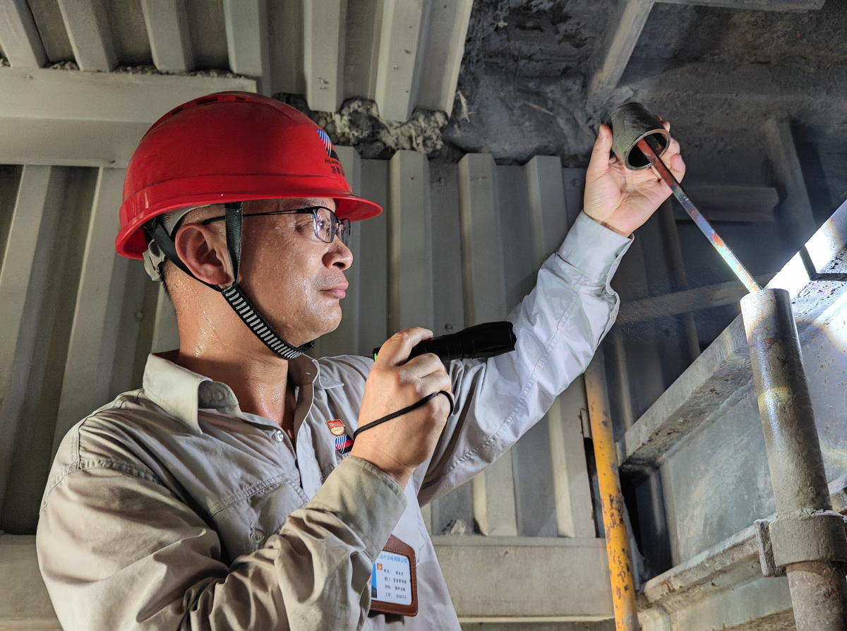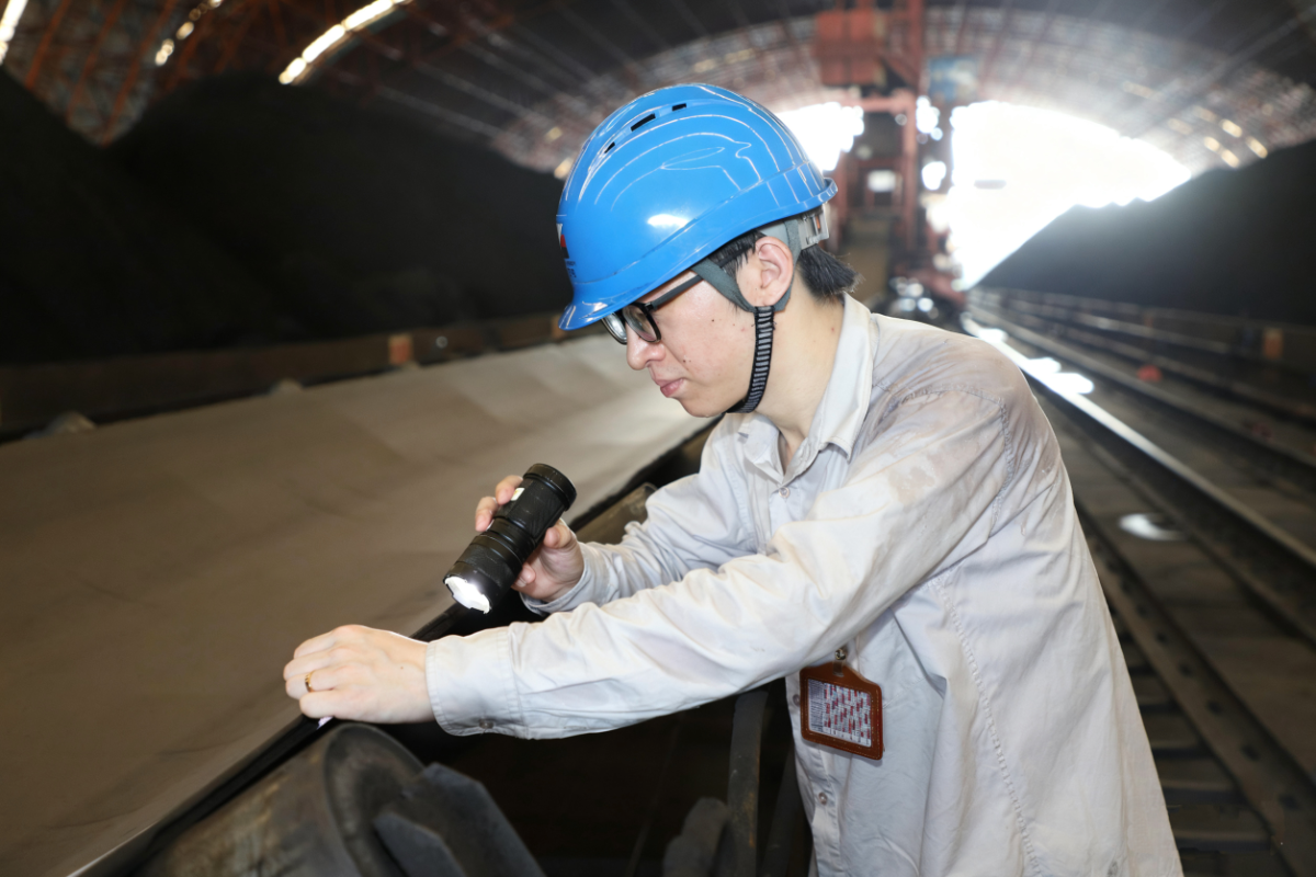 岑一洋每日深入現場,以“時時放心不下”的態度緊盯關鍵環節。煤場內悶熱不通風,在里面待上半小時,人就像從水里撈出來一樣。在輸煤棧橋,岑一洋俯身仔細檢查16A皮帶邊緣的磨損情況。這條皮帶作為上煤“主動脈”,在迎峰度夏期間幾乎不停歇運轉,承擔取煤入倉和提升庫存的雙重任務。在難得的皮帶停運間隙,他通過眼看、手摸等方式,不放過任何一處磨損隱患,確保這條“能源生命線”暢通無阻。