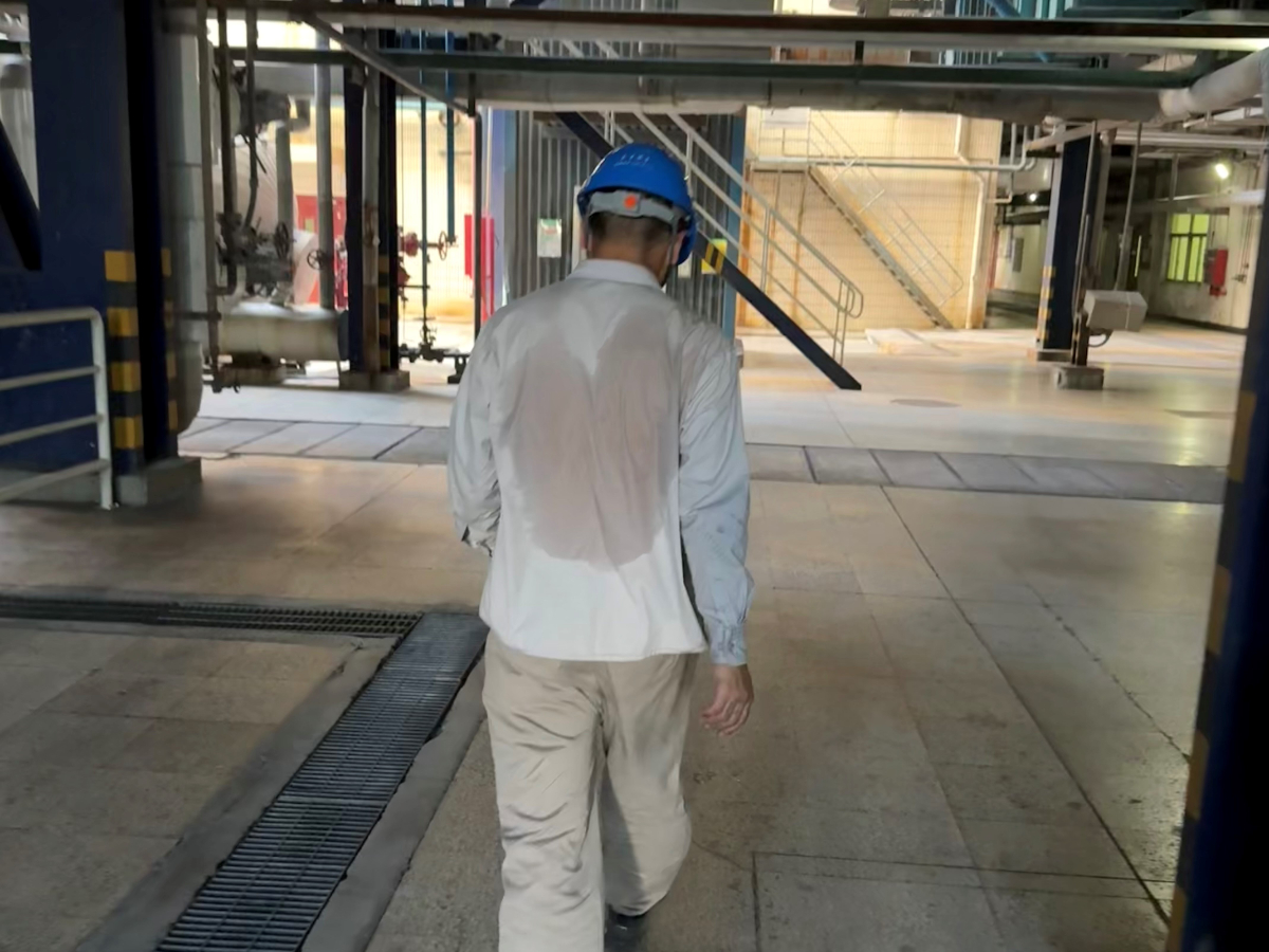 鍋爐現場環境溫度高,壓力變送器偶爾會出現數據漂移。張家勝保持著嚴謹細致的專業態度,反復檢查接線,認真測量校驗數據。他說:“儀控工作來不得半點馬虎,哪怕是0.1的誤差,都可能影響設備的正常運行?!甭?,張家勝的工裝后背因汗水浸透形成一個獨特的心形印記,仿佛便是他用"心"守護機組安全的證明。