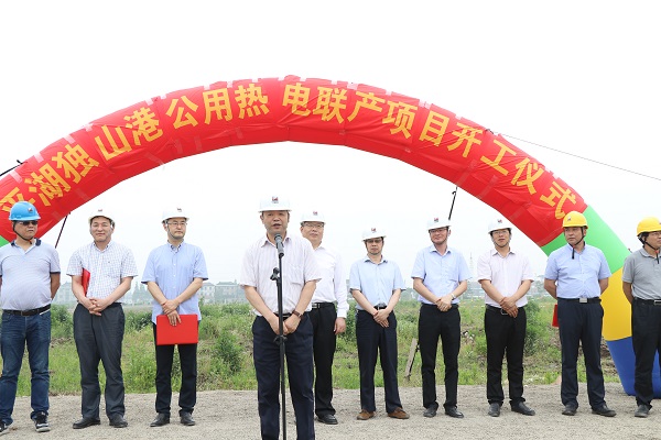 浙能集團(tuán)副總經(jīng)理朱松強(qiáng)、科服分公司總經(jīng)理華國鈞、集團(tuán)建設(shè)部副主任潘華林、興源節(jié)能公司董事長王靜毅、電建公司董事長楊志明,平湖市、獨(dú)山港鎮(zhèn)及各相關(guān)單位負(fù)責(zé)人參加了項(xiàng)目開工儀式。