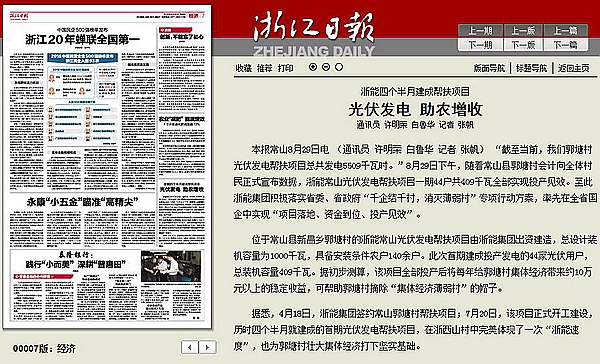 8月30日,浙江日?qǐng)?bào)報(bào)道浙能集團(tuán)率先在全省國(guó)企中實(shí)現(xiàn)“項(xiàng)目落地、資金到位、投產(chǎn)見(jiàn)效”。浙江日?qǐng)?bào) 圖
