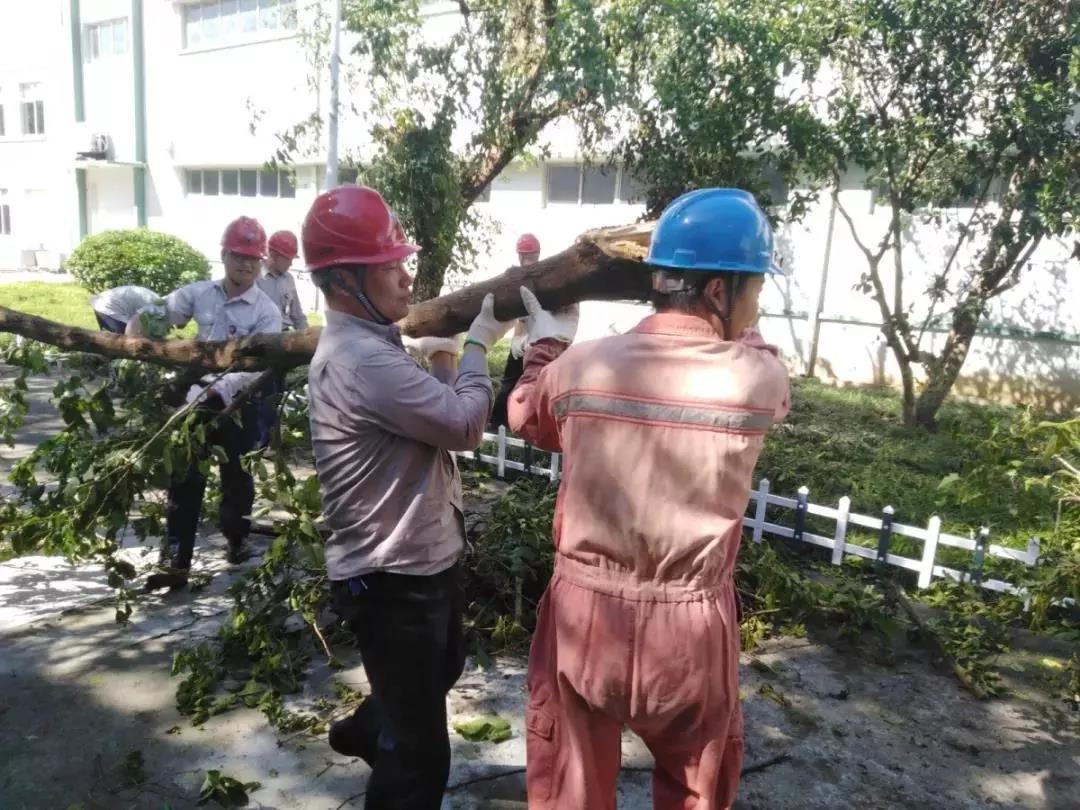 臺風(fēng)過后,臺州發(fā)電廠的廠區(qū)道路兩旁隨處可見倒伏的大樹,折斷的樹干和飄落的枯枝殘葉,為開展災(zāi)后自救工作帶來了障礙。8月11日,“利奇馬”登陸的第二天,來自臺電廠辦黨群、經(jīng)營、生產(chǎn)、公司、行政黨支部的76名機關(guān)科室的黨員、干部放棄周末休假時間,主動投入到災(zāi)后恢復(fù)道路及廠區(qū)文明衛(wèi)生清理工作中。13日,臺電再次派出第二批救援人員向臨海集結(jié),經(jīng)過一天一夜的努力,排水近12萬立方米,圓滿完成大洋小區(qū)地下停車場搶險任務(wù),20時30分,救援隊迅速轉(zhuǎn)戰(zhàn)臺州中學(xué)校區(qū)地下室!(文:汪舜檀,圖:朱新場)