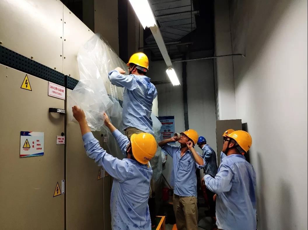 8月10日凌晨,臺風(fēng)登陸后,舟電公司主廠房受暴雨影響出現(xiàn)漏雨點、積水現(xiàn)象越來越多。當(dāng)夜,舟電公司立即安排防臺突擊隊、搶險待命小組趕赴現(xiàn)場連夜搶險,大家抓重點、找源頭、堵漏點,包雨布、扛沙袋、搭雨棚,連續(xù)奮戰(zhàn)幾個小時,有力保障配電間、UPS室、電子室等區(qū)域設(shè)備的穩(wěn)定運行。(文:鄒咪咪,圖:張效銘)