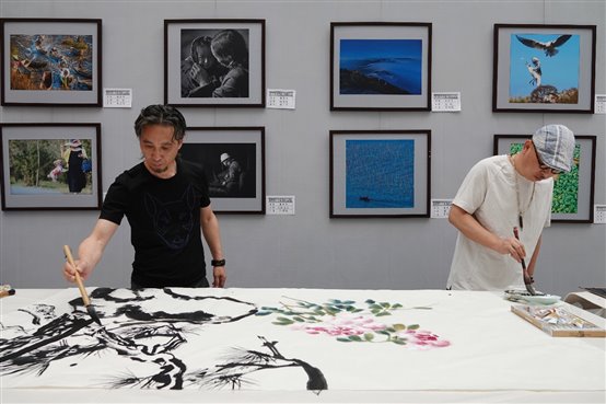 當天下午1時許,省文聯等來賓饒有興致地參觀了浙能集團職工創作的書畫攝影作品展。藝術家們現場揮毫潑墨,創作的《工匠精神》《勇當排頭兵建功新時代》《打造一流綜合能源基地》等書畫作品盡顯藝術魅力,表達了藝術家們對文化強企的期許,對工匠精神、浙江精神的禮贊。