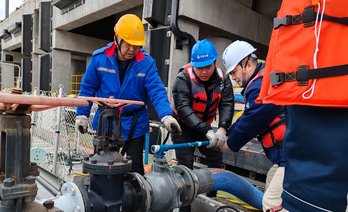 “一切檢查完畢,具備接卸條件!” “開始卸油!”3月6日上午10時48分,坐落于蘭溪市蘭江畔的浙石油蘭溪油庫內(nèi),隨著進(jìn)油現(xiàn)場總指揮一聲令下,油庫碼頭正式啟泵,“兆平6666”油船466噸柴油沿著配套管道緩緩注入油庫D01儲罐。這是該油庫具備運(yùn)營資質(zhì)以來首次進(jìn)油,有力開創(chuàng)油庫運(yùn)營新局面,奮力奪取一季度“開門紅”。